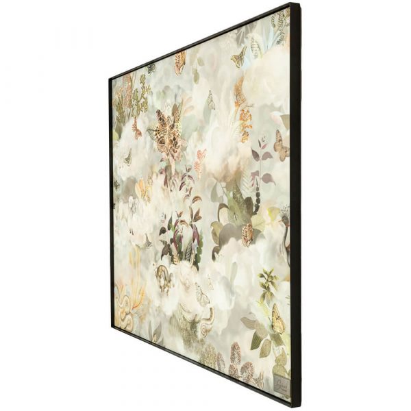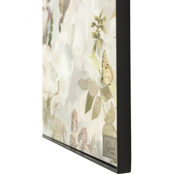 stabilen, matt schwarz gepulvertem Stahlrahmen mit einer Breite von 3 Millimetern und einer Tiefe von 30 Millimetern, in dem eine Holzplatte montiert ist.